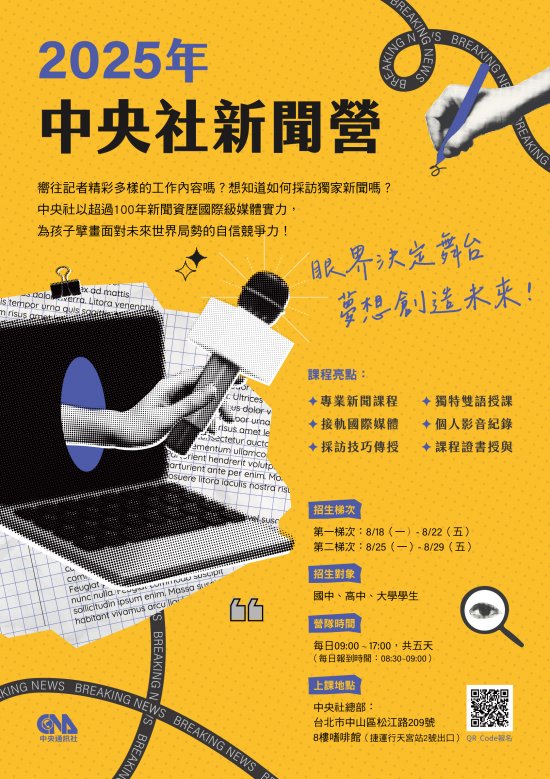 (二) | 新聞營: https://www.accupass.com/go/cnanewscamp2025 ,報名時間至 2025 年 7 月 20 日止。 |