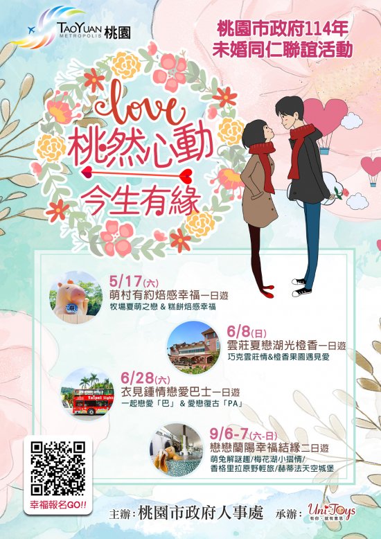 有關本府 114 年「桃然心動 今生有緣」未婚同仁聯誼活 動,第四梯次調整至 114 年 9 月 6 日及 7 日辦理一案,請查 照。